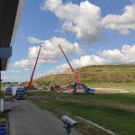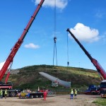 In de omgeving van de Vloeiveldweg in Tilburg is het de komende weken een af- en aanrijden van transporten met onderdelen voor de vier turbines. Bekijk dit filmpje om een beetje te zien wat erbij komt kijken. Veel wordt in de avonduren geleverd om zo min mogelijk verkeersoverlast te veroorzaken. Best indrukwekkend om al die turbineonderdelen te zien klaar liggen voor de opbouw vanaf oktober!